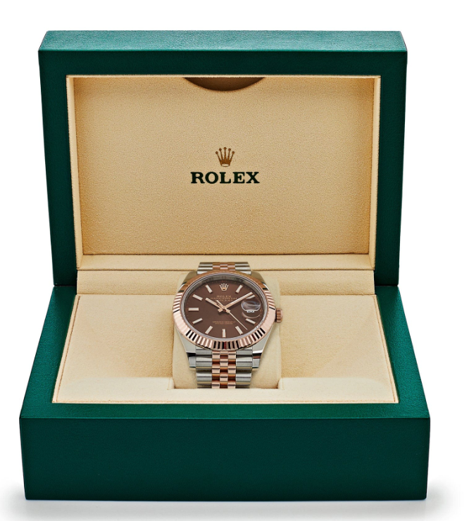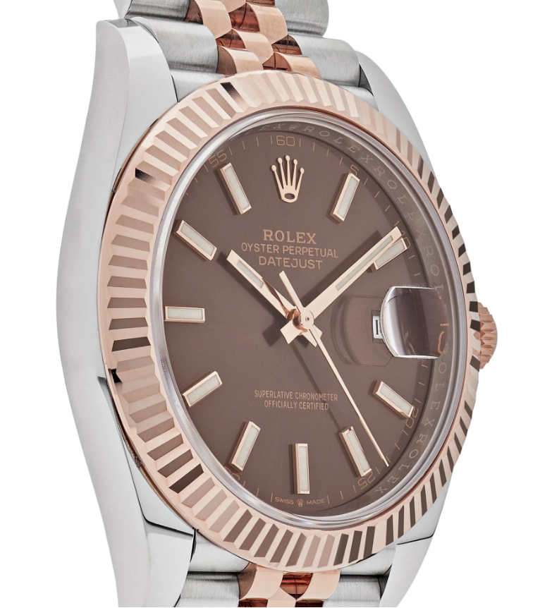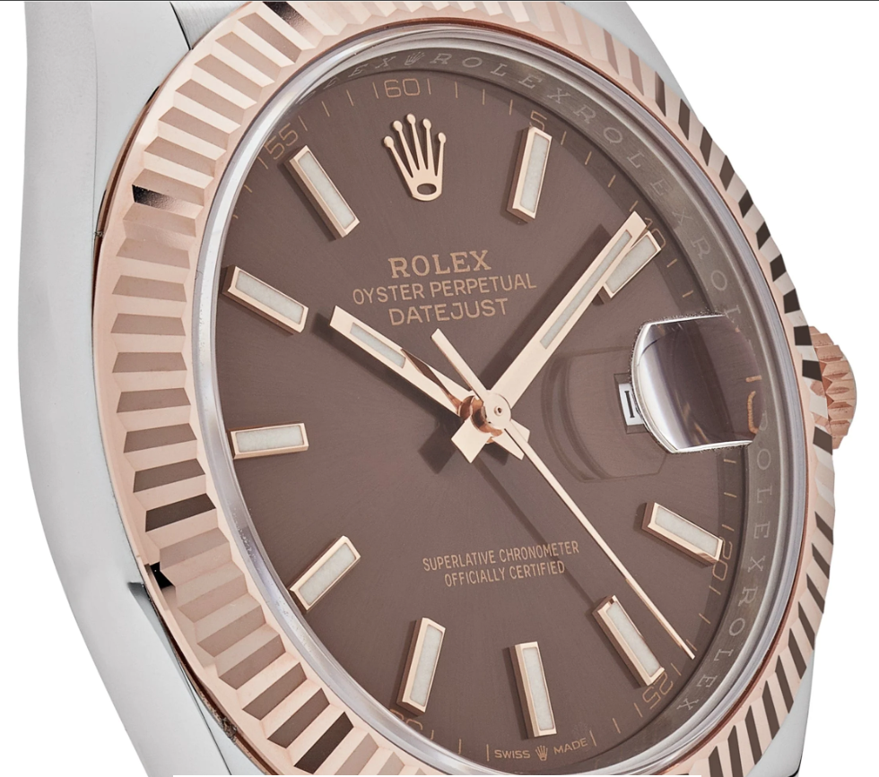 The Rolex Datejust is a stunning combination of modern sophistication and classic charm. Crafted with a 41mm stainless steel case, this model is elevated by an 18k Everose gold fluted bezel, creating a harmonious two-tone design that exudes elegance.