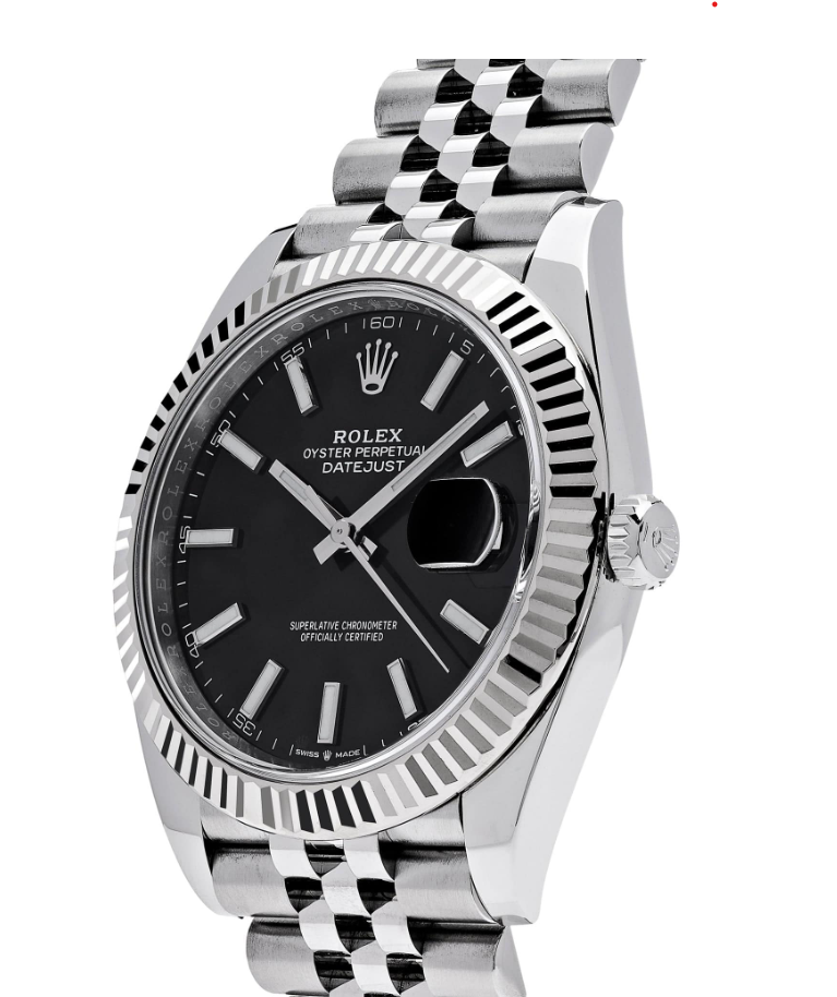 The Rolex Datejust is a refined timepiece that epitomizes the brand’s timeless design and modern innovation. Crafted with a 41mm stainless steel case, this watch features a striking white gold fluted bezel, adding a touch of sophistication and brilliance.